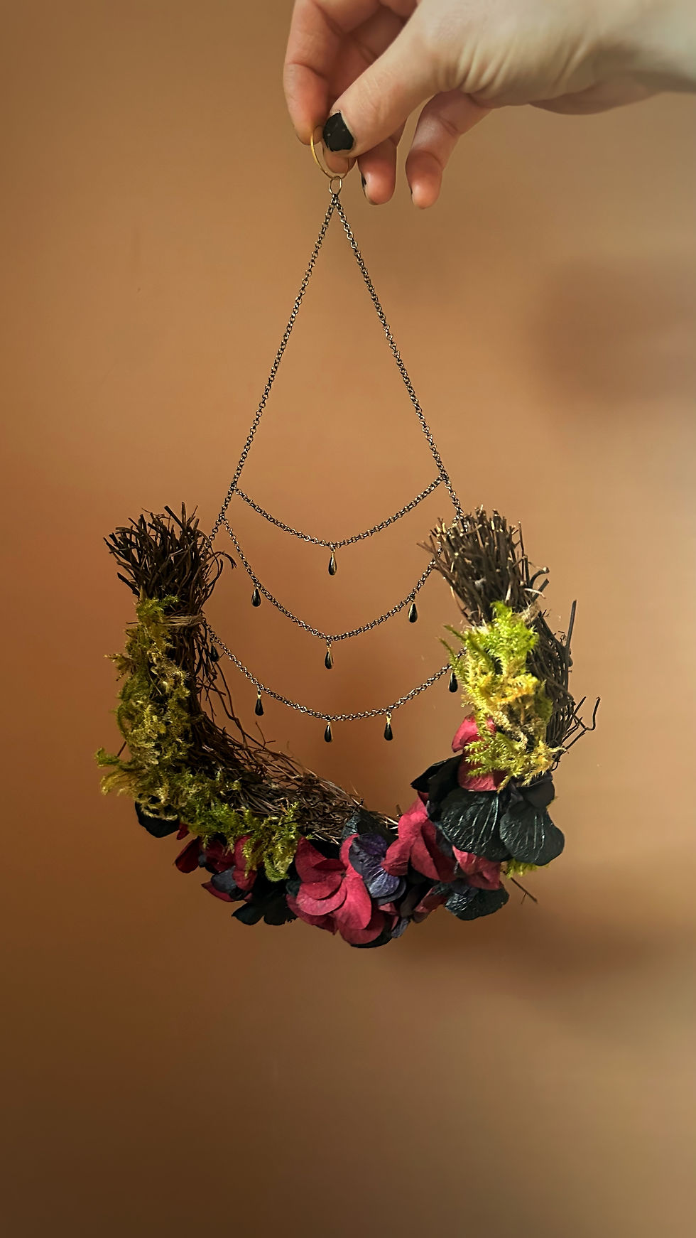 Voile astral - Suspension demi-lune - Thème INTUITION - Argile et fleurs séchées
